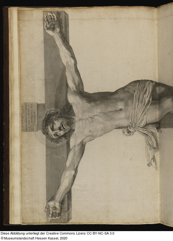 Beschriftungen: in der Platte: [hebräische Inschrift] [griechische Inschrift] IESVS NAZARENVS REX IVDEORVM; C. Mellan G. pinx. et sc. 1647 Cum priu. Reg.; DEDIÉ AV ROY TRES CHRESTIEN DE FRANCE ET DE NAVARRE LOVIS XIIII. Par son tres humble et tres fidelle subiet C. Mellan; Aux Galleries du Louvre;