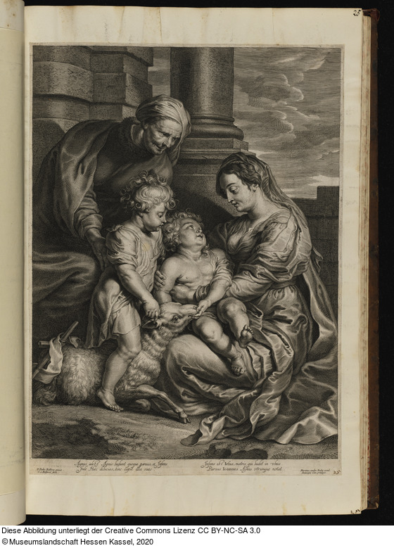 Beschriftungen: in der Platte: P. Paulus Rubbens pinxit.; S. à Bolswert fecit.; Agnus adest Agnis: ludunt quoque paruus, et Infans Inde Hæc delicias, kinc capit illa suas. Infans est Iesus, matris qui ludit in vlnis. Paruus Ioannes. Agnus vtrumque motat.; Martinus vanden Enden excud. Antuerpiæ Cum priuilegio.;