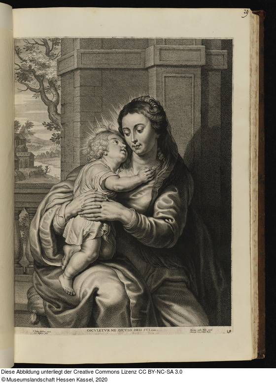 | Hist. Inhaltsverzeichnis: | 29. | La S. Vièrge, que l’Enfant Jesus embrasse; T. Ostulctur me osculo oris sui. / Cant. 1. | S. à Bolswert fec. Mart: van / den Enden excu: |