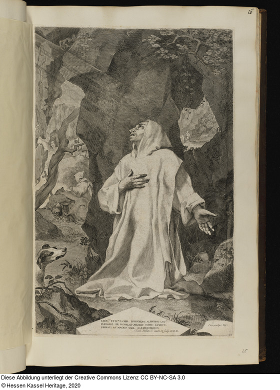 | Hist. Inhaltsverzeichnis: | 26. | S. Augustin, priant dans le desert; Ded. Eminmo et Rmo D. Card, Lugdunensi Alphonso - / Ludco Plessiaco de Richelieu etc. | Cl. Mellan inv. et sc. [nachträglicher Zusatz links mit Graphit von anderer Hand: 25] |