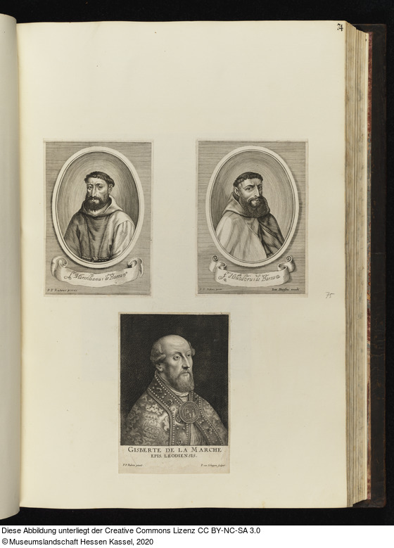 74. | F. Marcellianus de Barea / F. Heliodorus de Barea / Gisberte de la Marche, Epis. Leodiensis | Jo. Huÿssens exc. / P. van Schuppen sc. |
