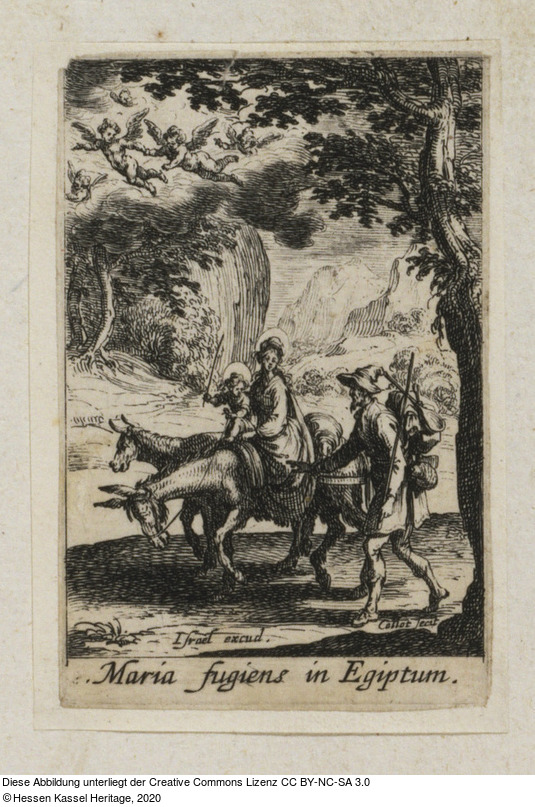 Beschriftungen: in der Platte: Callot fecit; Israel excud.; Maria fugiens in Egiptum.;