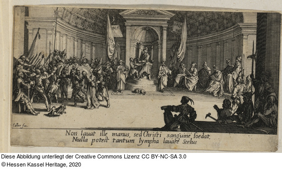 in der Platte: SPQR; SPQR; Callot fec.; Non lauat ille ... lympha lauare scelus;