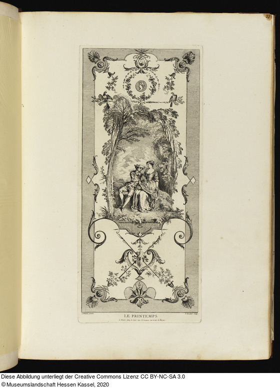Beschriftungen: in der Platte: A. Watteau pinxit.; F. Boucher Sculp.; LE PRINTEMPS; à Paris chez L. Cars rüe S.t Jacques vis à vis le Plessis.;