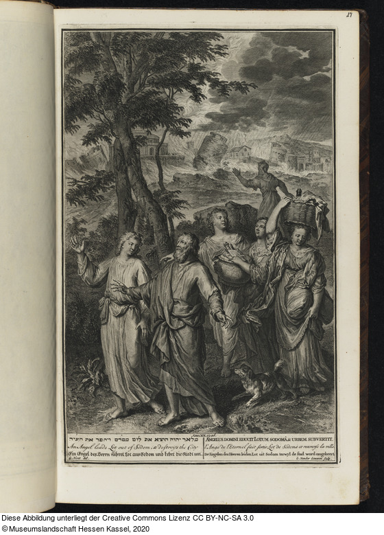 in der Platte: Gen. XIX. 15-26 ... Ein Engel des Herrn führet Lot aus Sodom und kejrt die Stadt um ... stad word omgekeert; G. Hoet del:; G. Vander Gouwen sculp.;